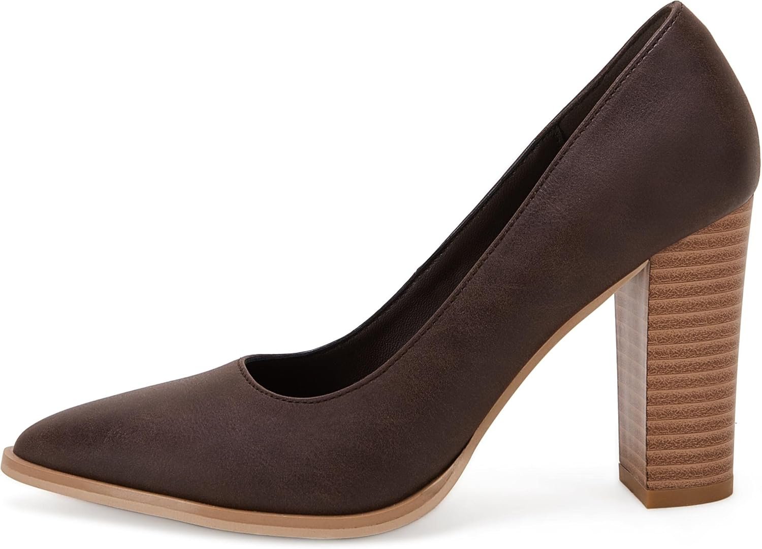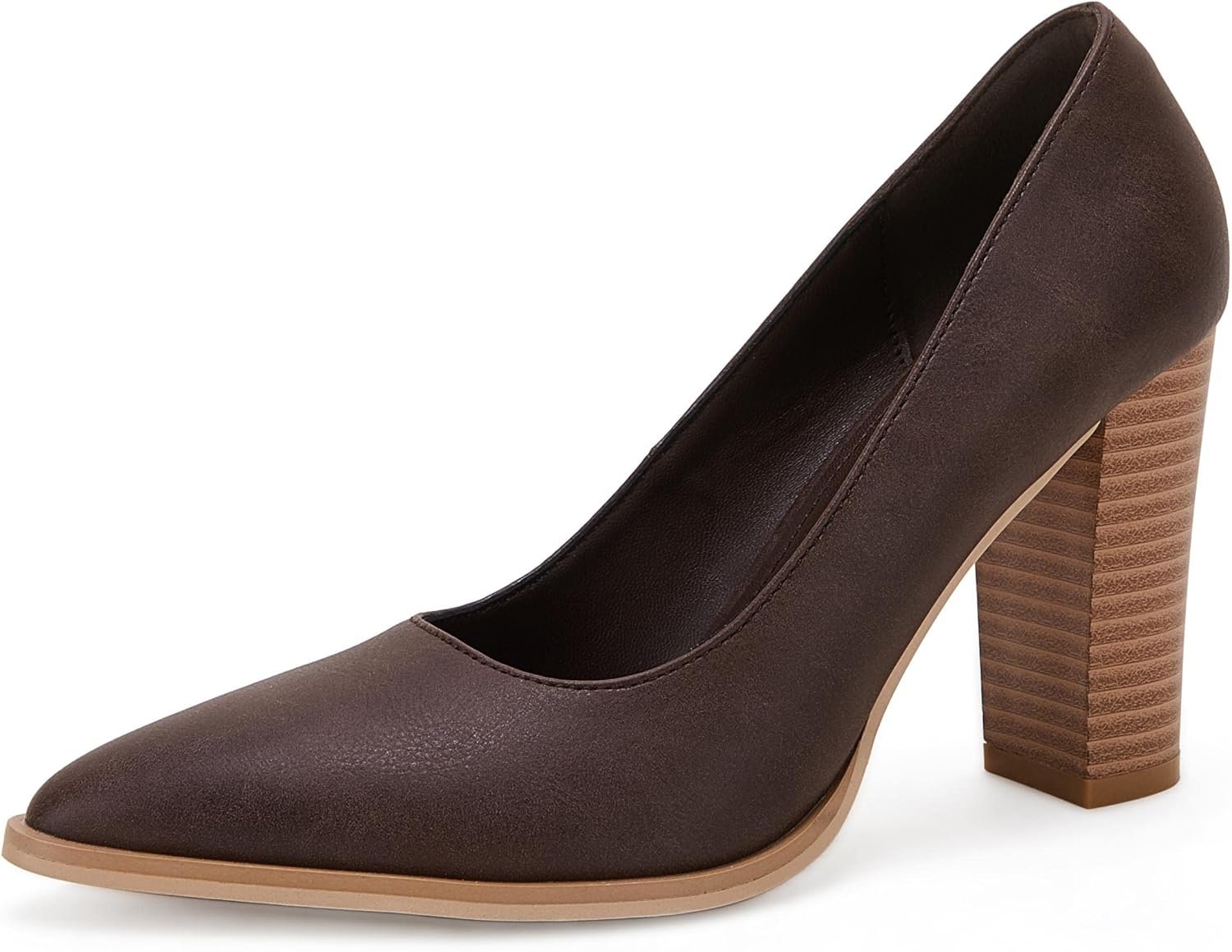 • Feature: Pumps for women, pointed closed toe, slip on, block stacked high heel, solid color, non-slip